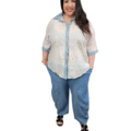 Vous êtes ici : Accueil1 / Vêtements grande taille2 / Hauts et Tuniques grande taille3 / Chemise à motifs broderie et bords jean