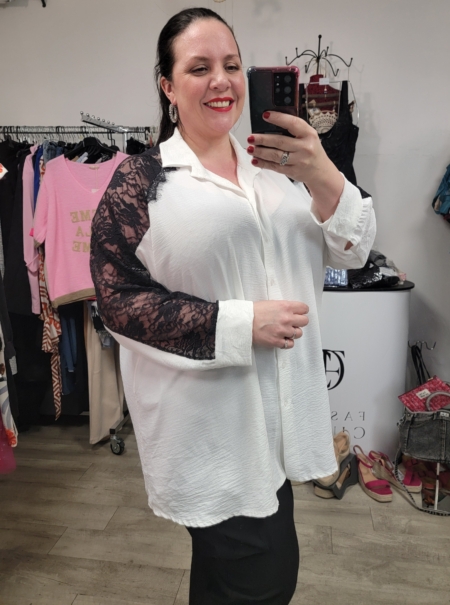 Vous êtes ici : Accueil1 / Vêtements grande taille2 / Hauts et Tuniques grande taille3 / Chemise longue avec manches dentelle
