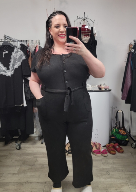 Cette combinaison en suédine noire a été pensée pour sublimer les courbes et affirmer la féminité, tout en offrant un confort inégalé. Sa matière effet daim, douce au toucher, épouse la silhouette sans la contraindre, pour un look chic et audacieux en toute simplicité.