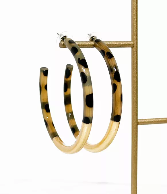 Succombez à l’alliance irrésistible du motif léopard sauvage et de l’éclat raffiné des feuilles d’or. Ces créoles en corne naturelle incarnent l’élégance audacieuse et le luxe artisanal, pour une allure qui ne laisse personne indifférent.