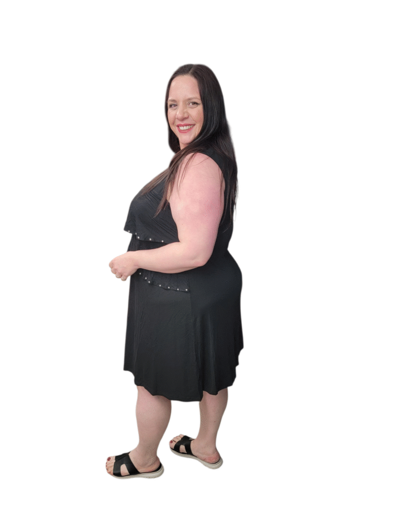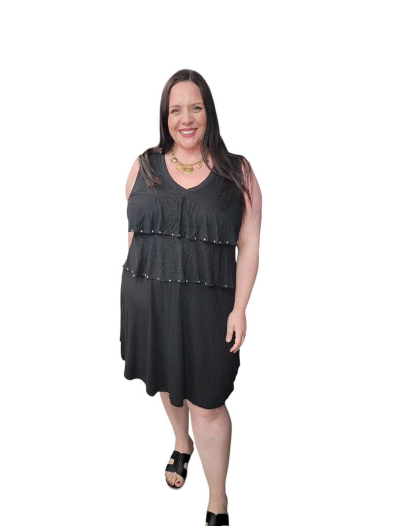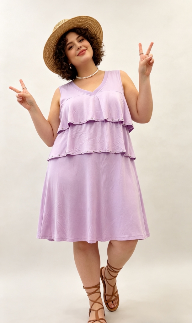 Robe à volants avec rivets – Noir, Blanc, Bleu ou Lilas (46/48 au 58/60)