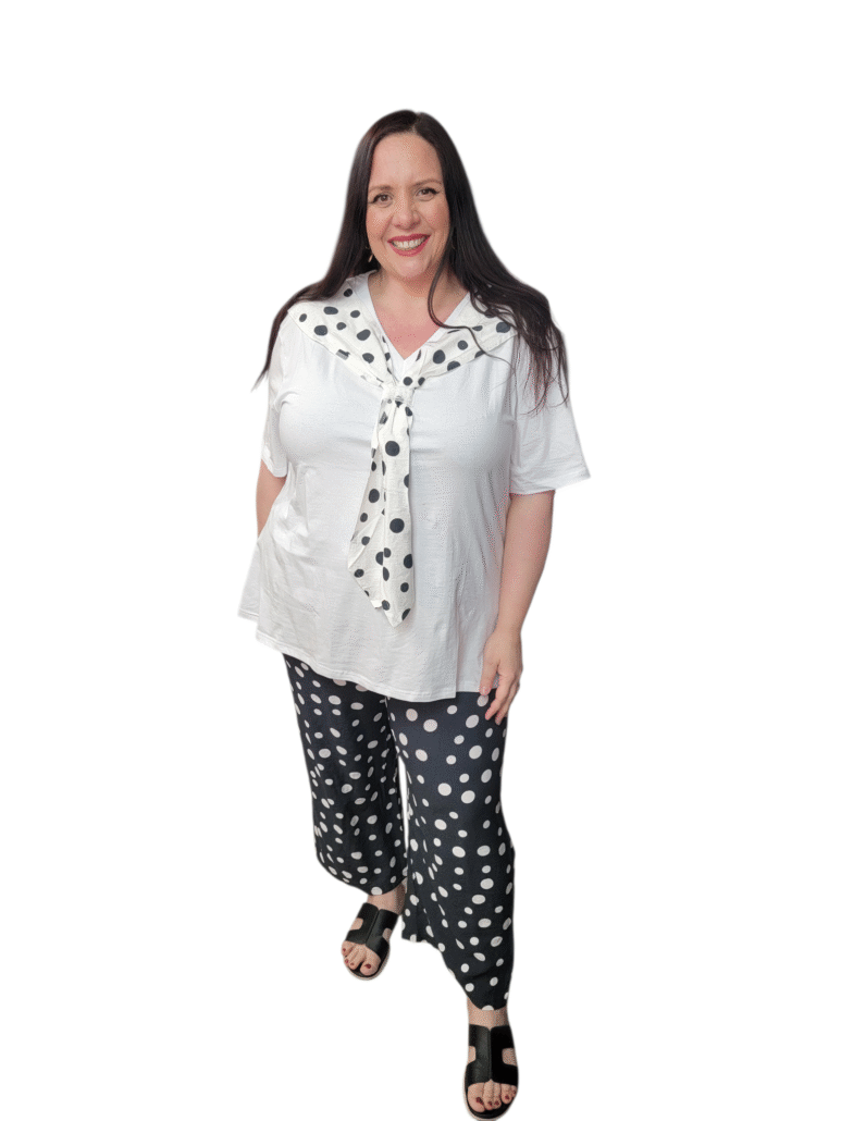 Vous êtes ici : Accueil1 / Vêtements grande taille2 / Hauts et Tuniques grande taille3 / Tee-shirt avec foulard pois